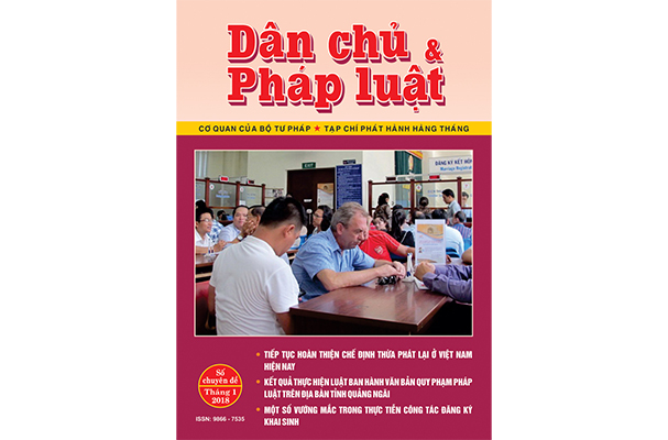 Trong số định kỳ tháng 3 (312) năm 2018, Tạp chí Dân chủ và Pháp luật giới thiệu đến bạn đọc nhiều bài viết thuộc các chuyên mục như: Xây dựng pháp luật, Pháp luật và Kinh tế, Thi hành pháp luật… với nhiều chủ đề hấp dẫn bàn về các vấn đề pháp lý như: Hoạt động trợ giúp pháp lý, nguyên tắc tranh tụng trong xét xử, việc làm cho người khuyết tật, bảo hộ quyền sở hữu công nghiệp, quản lý nhà nước về hoạt động bán hàng trên website thương mại điện tử, thuế sử dụng đất…