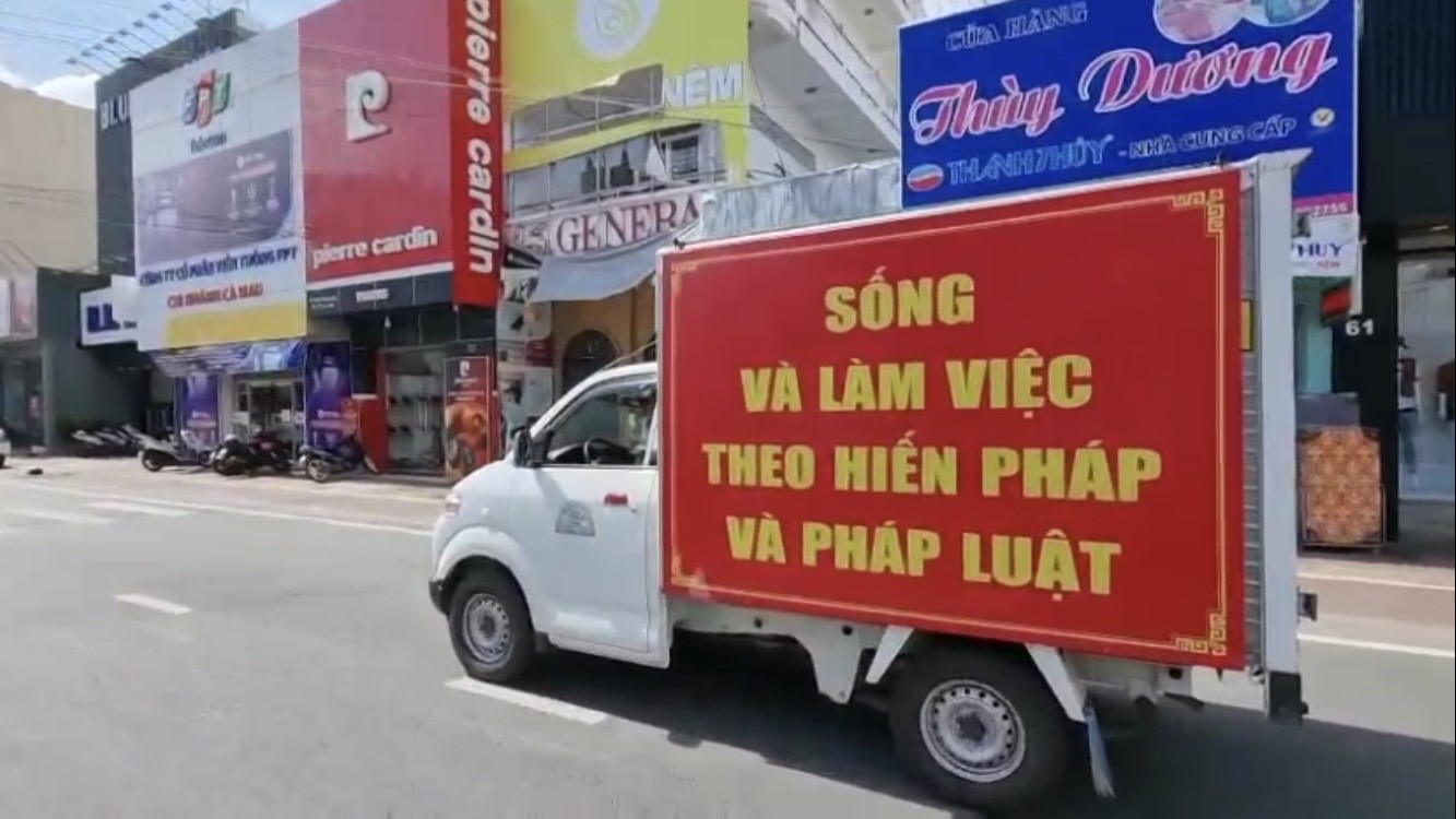 Ảnh: Tuyên truyền pháp luật lưu động trong tình hình phòng, chống dịch bệnh Covid-19 trên địa bàn tỉnh Cà Mau