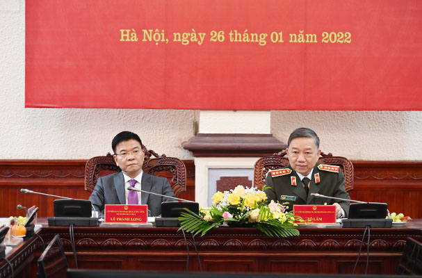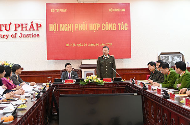 Bộ trưởng Tô Lâm nhấn mạnh Lãnh đạo Bộ Công an xác định quan hệ phối hợp với Bộ Tư pháp là một quan hệ trọng tâm bởi một xã hội trật tự, kỷ cương, an toàn phải có hệ thống pháp luật hoàn thiện theo đúng đường lối của Đảng, yêu cầu của đất nước, nguyện vọng của nhân dân. Lưu ý khối lượng công tác xây dựng, hoàn thiện pháp luật còn rất nhiều, cuộc sống lại luôn thay đổi, Bộ trưởng Bộ Công an nêu bật quan niệm phải cải cách pháp luật, tháo gỡ được các vướng mắc thể chế, bảo đảm công tác quản lý nhà nước.