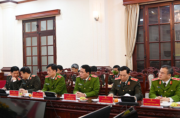 Dự và chỉ đạo Hội nghị có Đại tướng Tô Lâm, Ủy viên Bộ Chính trị, Bộ trưởng Bộ Công an và Ủy viên Trung ương Đảng, Bộ trưởng Bộ Tư pháp Lê Thành Long.
