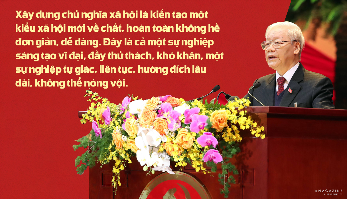 Theo Tổng Bí thư, cả lý luận và thực tiễn đều cho thấy, xây dựng chủ nghĩa xã hội là kiến tạo một kiểu xã hội mới về chất, hoàn toàn không hề đơn giản, dễ dàng. Đây là cả một sự nghiệp sáng tạo vĩ đại, đầy thử thách, khó khăn, một sự nghiệp tự giác, liên tục, hướng đích lâu dài, không thể nóng vội.