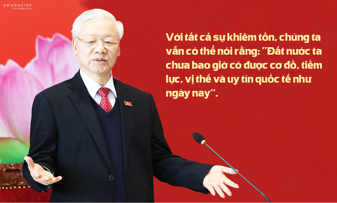 Theo Tổng Bí thư, chúng ta đã đạt được những thành tựu to lớn, có ý nghĩa lịch sử, phát triển mạnh mẽ, toàn diện hơn so với những năm trước đổi mới. Với tất cả sự khiêm tốn, chúng ta vẫn có thể nói rằng: “Đất nước ta chưa bao giờ có được cơ đồ, tiềm lực, vị thế và uy tín quốc tế như ngày nay”.