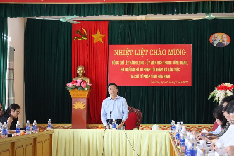 Phát biểu tại buổi làm việc, Bộ trưởng Lê Thành Long đã ghi nhận những kết quả trong công tác Tư pháp của Hoà Bình trong điều kiện biên chế có hạn, công việc nhiều, ảnh hưởng dịch bệnh; đòi hỏi chất lượng công việc ngày càng cao…Hoà Bình cũng xuất hiện nhiều điểm sáng trong công tác, được đánh giá xếp hạng cao, đạt nhiều danh hiệu thi đua khen thưởng của Bộ, ngành và tỉnh.