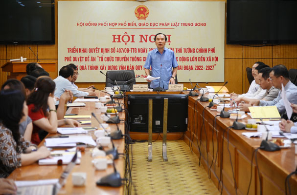 Thay mặt Hội đồng phối hợp PBGDPL trung ương, Thứ trưởng Nguyễn Thanh Tịnh mong rằng trong quá trình triển khai Đề án, các bộ, ngành, UBND cấp tỉnh phối hợp chặt chẽ với Bộ Tư pháp, cơ quan tư pháp địa phương trong triển khai Quyết định số 407/QĐ-TTg; kịp thời tháo gỡ những khó khăn, vướng mắc; đề xuất, thực hiện các giải pháp nâng cao hiệu quả trong thực hiện truyền thông dự thảo chính sách.