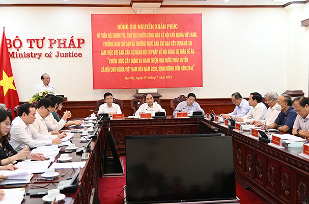 Kết luận cuộc làm việc, Chủ tịch nước Nguyễn Xuân Phúc chia sẻ với những vất vả, khó khăn của Bộ Tư pháp và đặc biệt đề cao tầm quan trọng của Bộ Tư pháp trong bộ máy nhà nước. Hoan nghênh Bộ Tư pháp chuẩn bị nghiêm túc, trách nhiệm, nhiều ý kiến tốt, cụ thể, tạo không khí làm việc dân chủ, cởi mở, Chủ tịch nước một lần nữa khẳng định Bộ Tư pháp có vai trò quan trọng trong hoàn thiện Đề án và cũng là cơ quan tổ chức thực hiện những nội dung rất căn bản của Đề án.
