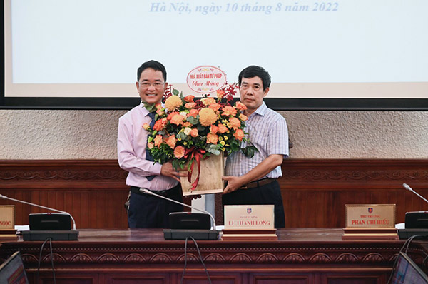 Phát biểu chúc mừng 03 đồng chí lãnh đạo cấp Vụ được bổ nhiệm, Bộ trưởng Bộ Tư pháp Lê Thành Long đánh giá cao những đóng góp của các đồng chí đối với Bộ, Ngành và các đơn vị nơi các đồng chí đã và đang công tác trong suốt thời gian qua, dù ở các cương vị khác nhau, nhưng đều là những vị trí quan trọng trong công tác của Bộ, Ngành và đơn vị trực tiếp quản lý. Bộ trưởng Lê Thành Long hy vọng với trình độ và bề dày kinh nghiệm công tác, các đồng chí sẽ tiếp tục phát huy những thế mạnh, nguồn lực sẵn có, đổi mới, sáng tạo, đưa công tác của các đơn vị ngày càng phát triển vững mạnh, góp phần tích cực vào việc hoàn thành xuất sắc các nhiệm vụ chính trị của Bộ, Ngành Tư pháp.