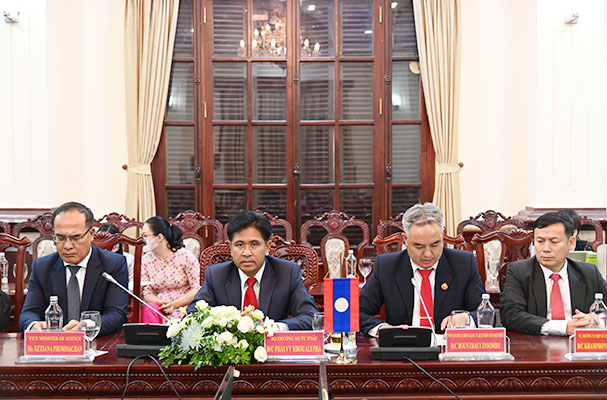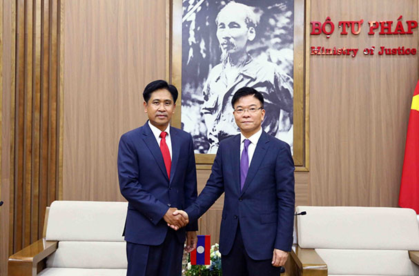 Về đào tạo luật, Bộ Tư pháp Lào tiếp tục tăng cường cử sinh viên sang Việt Nam học luật tại Trường Đại học Luật Hà Nội và Trường Cao đẳng Luật miền Trung; tích cực chủ động làm việc với Bộ Văn hóa, Giáo dục và Thể thao của Lào để sớm cử cán bộ của Bộ Tư pháp Lào sang Việt Nam học tập theo suất học bổng đào tạo thạc sỹ, tiến sỹ luật. Tăng cường trao đổi, thảo luận giữa hai bên để các cơ quan tư pháp hai nước đẩy mạnh hợp tác trong giải quyết các vụ việc về quốc tịch có liên quan đến công dân Việt Nam và Lào. Về Dự án ODA hỗ trợ Học viện Tư pháp quốc gia Lào, đề nghị hai Bộ Tư pháp phối hợp chặt chẽ để kết thúc Dự án vào tháng 12/2022 theo đúng quy định của Văn kiện Dự án, đảm bảo hiệu quả thiết thực, đáp ứng nhu cầu đào tạo nguồn nhân lực cho phía Lào.