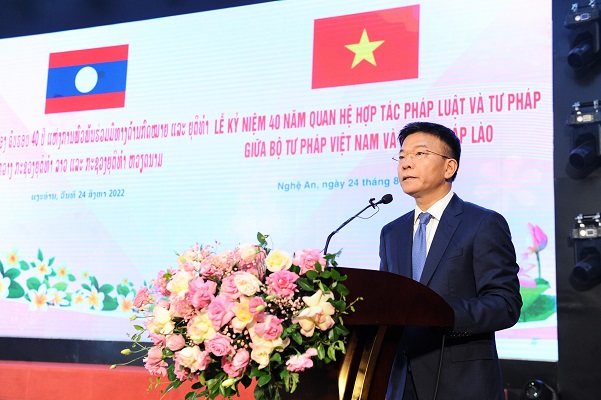 Phát biểu tại Lễ kỷ niệm, Bộ trưởng Lê Thành Long nhấn mạnh: Lễ kỷ niệm 40 năm quan hệ hợp tác pháp luật và tư pháp giữa 2 Bộ Tư pháp có ý nghĩa quan trọng nhân kỷ niệm 60 năm Ngày thiết lập quan hệ ngoại giao Việt Nam - Lào, 45 năm Ngày ký Hiệp ước Hữu nghị và Hợp tác Việt Nam - Lào góp phần làm sâu sắc hơn nữa mối quan hệ hữu nghị vĩ đại, đoàn kết đặc biệt, hợp tác toàn diện giữa hai Đảng, hai Nhà nước và nhân dân hai nước Việt Nam - Lào.