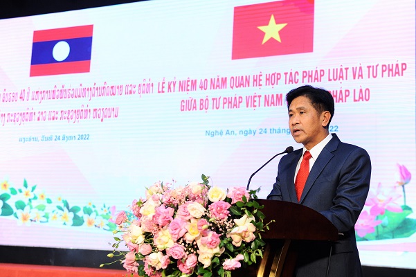 Phát biểu tại lễ kỷ niệm, Bộ trưởng Bộ Tư pháp Lào, Phây-vi Xi-bua Li-pha bày tỏ, trải qua thời gian, hai nước Việt Nam - Lào đã hợp tác toàn diện, ngày càng đi lên tầm cao mới, gắn bó bền vững hơn. Hai bên thực hiện kỷ niệm để ghi nhớ công lao của lãnh đạo hai Bộ Tư pháp đã tiên phong, thực hiện hợp tác để góp phần nâng cao tầm quan hệ hữu nghị đặc biệt giữa hai dân tộc. Với tình cảm trong sáng đầy ý nghĩa như Chủ tịch Hồ Chí Minh đã nói “Việt - Lào hai nước chúng ta tình sâu hơn nước Hồng Hà, Cửu Long”. Chủ tịch Cay-xỏn Phôm-vi-hản cũng đã khẳng định “Núi có thể mòn sông có thể cạn, song song tình nghĩa Lào - Việt sẽ mãi mãi vững bền hơn núi, hơn song…”.