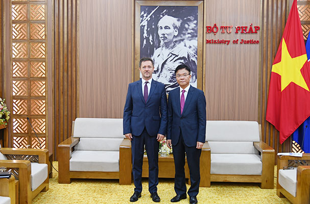 Chúc mừng ngài Đại sứ Baloghdi Tibor mới nhận nhiệm vụ Đại sứ đặc mệnh toàn quyền Hung-ga-ry tại Việt Nam, Bộ trưởng Bộ Tư pháp Lê Thành Long đánh giá cao sự hợp tác giữa Việt Nam và Hung-ga-ry nói chung, hợp tác giữa hai Bộ Tư pháp của hai nước nói riêng. Bộ trưởng đặc biệt cảm ơn các cán bộ Đại sứ quán Hung-ga-ry đã nỗ lực giúp thu xếp thành công cuộc gặp song phương giữa hai Bộ trưởng Tư pháp trong khuôn khổ chuyến thăm chính thức Hung-ga-ry của Chủ tịch Quốc hội tháng 6 vừa qua, trong đó hai Bộ trưởng Tư pháp đã ký Chương trình hợp tác giai đoạn 2022-2023 trước sự chứng kiến của Chủ tịch Quốc hội Việt Nam và Hung-ga-ry.