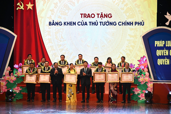 Một trong những nội dung quan trọng của buổi Lễ chính là phần trao Bằng khen của Thủ tướng Chính phủ cho các tập thể và cá nhân đạt thành tích xuất sắc qua 10 năm hưởng ứng Ngày Pháp luật Việt Nam trên cả nước. Đây chính là sự ghi nhận, tôn vinh những tập thể, cá nhân tiêu biểu đã có thành tích xuất sắc trong công tác này.