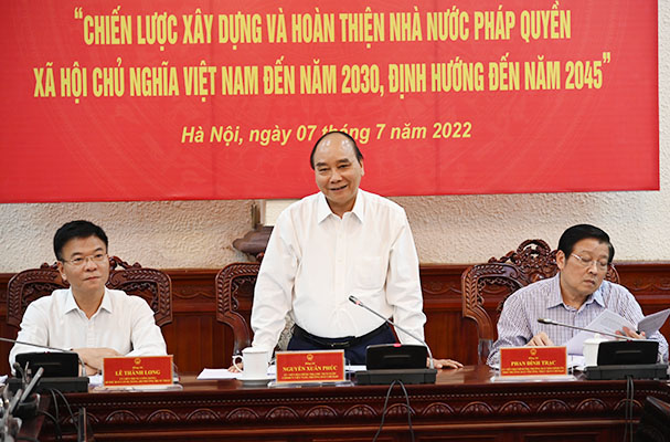 Chiều 7/7, Ủy viên Bộ Chính trị, Chủ tịch nước Nguyễn Xuân Phúc, Trưởng Ban Chỉ đạo Đề án “Chiến lược xây dựng và hoàn thiện Nhà nước pháp quyền xã hội chủ nghĩa Việt Nam đến năm 2030, định hướng đến năm 2045” đã nhấn mạnh như trên khi chủ trì buổi làm việc của Thường trực Ban Chỉ đạo xây dựng Đề án với Ban Cán sự Đảng Bộ Tư pháp về nội dung dự thảo Đề án liên quan đến tổ chức và hoạt động của Bộ Tư pháp.