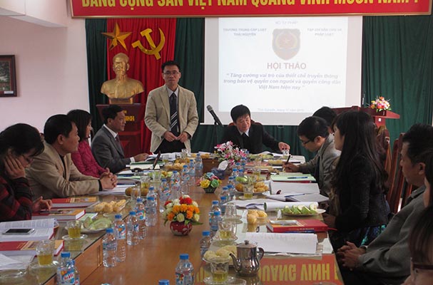 Khai mạc hội thảo, TS. Đặng Vũ Huân, Tổng biên tập Tạp chí Dân chủ và Pháp luật khẳng định: Mặc dù thời gian qua các thiết chế truyền thông đã có nhiều đóng góp to lớn trong việc bảo vệ quyền con người, quyền công dân, tuy nhiên vẫn chưa phát huy mạnh mẽ được vai trò của mình. Điều này một phần xuất phát từ việc năng lực và sức mạnh của thiết chế truyền thông chưa được khai thác một cách toàn diện và bài bản, chưa được tiến hành thường xuyên nên chưa được nhiều người biết và hiểu rõ. Mặt khác, các quy định của pháp luật về thiết chế truyền thông trong bảo vệ quyền con người và quyền công dân cũng chưa thật sự đảm bảo tính hệ thống, đồng bộ. Đó cũng là nguyên nhân dẫn đến sự hạn chế trong công tác bảo vệ quyền con người và quyền công dân, hay nói cách khác, thiết chế truyền thông chưa đáp ứng được nhu cầu thực tế về bảo vệ quyền con người, quyền công dân. Hội thảo “Tăng cường vai trò của thiết chế truyền thông trong bảo vệ quyền con người và quyền công dân ở Việt Nam hiện nay” được tổ chức là nhằm mục đích tìm hiểu sâu hơn quan niệm, nhận thức cũng như thực trạng vai trò của thiết chế truyền thông trong bảo vệ quyền con người, quyền công dân; đồng thời lắng nghe các ý kiến tham luận, trao đổi về các vấn đề này của các chuyên gia, phóng viên, nhà báo… từ thực tiễn của tỉnh Thái Nguyên.