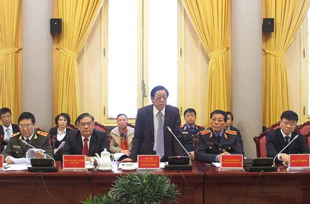 Ông Giang Sơn cho biết, những luật, bộ luật và nghị quyết được công bố lần này đã thể chế hóa đầy đủ, toàn diện các chủ trương, đường lối, quan điểm của Đảng về cải cách tư pháp; thể hiện đúng tinh thần của Hiến pháp năm 2013, nhằm tạo ra cơ chế hữu hiệu để bảo vệ chế độ, bảo vệ quyền con người, quyền công dân, lợi ích của Nhà nước và tổ chức, góp phần bảo vệ trật tự, an toàn xã hội, thúc đẩy sự phát triển kinh tế thị trường định hướng xã hội chủ nghĩa ở Việt Nam.