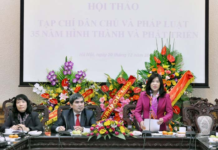 Phát biểu tại Hội thảo, thay mặt lãnh đạo Bộ Tư pháp, Thứ trưởng Nguyễn Thúy Hiền đã biểu dương và hoan nghênh những cống hiến, nỗ lực to lớn đối với sự nghiệp báo chí cách mạng nói chung, sự nghiệp tư pháp nói riêng của các thế hệ cán bộ, biên tập viên, cộng tác viên của Tạp chí. Theo Thứ trưởng, Tạp chí đã thực hiện tốt nhiệm vụ tuyên truyền, phổ biến chủ trương, đường lối, chính sách của Đảng, pháp luật của Nhà nước, là nơi trao đổi về khoa học pháp lý, thông tin lý luận, nghiệp vụ và thực tiễn trong xây dựng, thi hành pháp luật và phát huy dân chủ XHCN cũng như phục vụ hoạt động chỉ đạo, điều hành, hướng dẫn nghiệp vụ công tác tư pháp, góp phần đáp ứng nhu cầu nghiên cứu, tìm hiểu về pháp luật của nhân dân, nâng cao hiệu lực, hiệu quả quản lý nhà nước bằng pháp luật, tăng cường pháp chế, phát huy dân chủ, thực hiện công bằng xã hội.