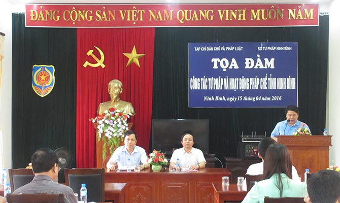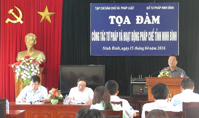 Phát biểu chào mừng tại buổi tọa đàm, đồng chí Nguyễn Hùng Tiến, Giám đốc Sở Tư pháp tỉnh Ninh Bình khẳng định: Thời gian qua, Ngành Tư pháp Ninh Bình đã làm tốt công tác tham mưu cho cấp Ủy, Đảng, chính quyền địa phương trong việc xây dựng và tổ chức thực hiện có hiệu quả chương trình, kế hoạch công tác tư pháp nói chung và từng chuyên đề, lĩnh vực công tác của Ngành; có sự phối hợp chặt chẽ với các sở, ban, ngành có liên quan trong việc thực hiện các mục tiêu, nhiệm vụ của Ngành Tư pháp.