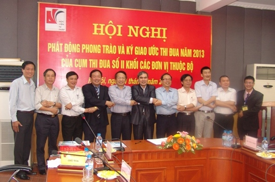 - Thực hiện tốt khẩu hiệu thi đua của Cụm năm 2013 “Thi đua thiết thực, năng động, sáng tạo, phát triển và đoàn kết” với mục tiêu trọng tâm của các đơn vị thuộc khối báo chí xuất bản “tăng doanh thu, nâng cao vị thế, uy tín trong làng báo chí, xuất bản”, đơn vị thuộc khối đào tạo, bồi dưỡng cần “xây dựng và nâng cao chất lượng các cơ sở đào tạo cán bộ tư pháp”;