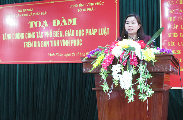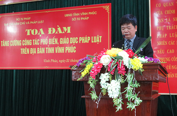 Khai mạc buổi tọa đàm, TS. Đặng Vũ Huân, Tổng biên tập Tạp chí Dân chủ và Pháp luật đã khẳng định: Công tác phổ biến, giáo dục pháp luật có vị trí, vai trò rất quan trọng trong đời sống chính trị, xã hội, đặc biệt là trong điều kiện nước ta đang xây dựng và hoàn thiện Nhà nước pháp quyền xã hội chủ nghĩa của nhân dân, do nhân dân và vì nhân dân. Thông qua công tác phổ biến, giáo dục pháp luật quyền được thông tin về pháp luật của công dân được đảm bảo, từ đó giúp cho cán bộ và nhân dân nâng cao hiểu biết pháp luật, có niềm tin và sử dụng pháp luật để bảo vệ quyền và lợi ích hợp pháp của mình. Từ khi Luật Phổ biến, giáo dục pháp luật có hiệu lực thi hành, Vĩnh Phúc là một trong những địa phương luôn đi đầu trong công tác này.