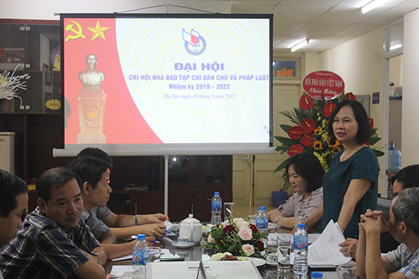 Phát biểu tại Đại hội, đồng chí Hà Thị Hồng Dương, Ủy viên Ban Chấp hành, Trưởng Ban Công tác Hội - Hội Nhà báo Việt Nam đã ghi nhận và biểu dương những kết quả mà Chi hội Nhà báo Tạp chí Dân chủ và Pháp luật đã đạt được trong nhiệm kỳ vừa qua. Với số lượng hội viên không nhiều, nhưng thời gian qua, Chi hội đã làm được rất nhiều việc và đạt được hiệu quả cao. Trong bối cảnh báo chí đang đứng trước những thách thức do sự phát triển của truyền thông kỹ thuật số và mạng xã hội, đồng chí Hà Thị Hồng Dương ấn tượng với số lượng phát hành lớn của Tạp chí Dân chủ và Pháp luật so với các Tạp chí chuyên ngành khác, đồng thời nhấn mạnh sự ảnh hưởng của Tạp chí Dân chủ và Pháp luật đối với hoạt động của Bộ, NgànhTư pháp với tư cách là cẩm nang truyền bá khoa học pháp lý; tuyên truyền, phổ biến chủ trương, đường lối, chính sách của Đảng, pháp luật của Nhà nước có liên quan đến hoạt động xây dựng, thực hiện pháp luật và công tác tư pháp đến với người dân. Bên cạnh đó, đồng chí Hà Thị Hồng Dương đánh giá cao Chi hội Nhà báo Tạp chí Dân chủ và Pháp luật trong việc quan tâm, bồi dưỡng tư tưởng, bản lĩnh chính trị cho các hội viên, tạo sự đồng thuận cao, luôn bám sát tôn chỉ mục đích của Tạp chí. Trưởng Ban Công tác Hội lưu ý, trong thời gian tới, Chi hội cần tiếp tục quan tâm hơn nữa đến việc giáo dục tư tưởng chính trị, đặc biệt là Quy định đạo đức nghề nghiệp và Quy tắc sử dụng mạng xã hội của người làm báo Việt Nam gắn với việc thực hiện đẩy mạnh học tập và làm theo tư tưởng, đạo đức, phong cách Hồ Chí Minh; không ngừng nâng cao trình độ chuyên môn nghiệp vụ; giữ vững kỷ cương, nền nếp sinh hoạt Hội; quan tâm bồi dưỡng, phát triển kết nạp hội viên mới, đặc biệt là những hội viên trẻ.