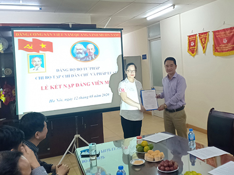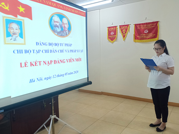 Sinh thời Chủ tịch Hồ Chí Minh đã khẳng định: “Vấn đề phát triển Đảng là vấn đề quan trọng trong xây dựng Đảng. Đảng phải có một số lượng Đảng viên nhất định mới hình thành nên tổ chức Đảng. Sự nghiệp lãnh đạo cách mạng của Đảng là sự nghiệp vĩ đại lâu dài, phải do nhiều thế hệ chiến sĩ cộng sản tham gia gánh vác. Năng lực lãnh đạo và sức chiến đấu chỉ có thể có trên cơ sở số lượng, chất lượng đội ngũ Đảng viên tương ứng. Do đó, Đảng phải thường xuyên làm tốt công tác phát triển Đảng”. Với ý nghĩa đó, sáng ngày 12/05/2020, Chi bộ Tạp chí Dân chủ và Pháp luật đã tổ chức Lễ kết nạp Đảng viên mới cho quần chúng ưu tú Phạm Thu Hằng - Biên tập viên.