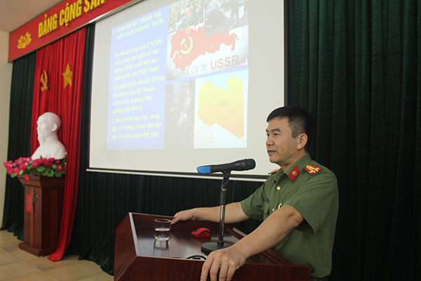Trao đổi tại buổi sinh hoạt, Đại tá, PGS.TS. Nguyễn Trung Kiên đã sơ lược về tình hình an ninh chính trị trong nước và quốc tế. Theo TS. Nguyễn Trung Kiên thế giới ngày nay có nhiều biến động, phức tạp và khó lường, nhưng hòa bình, hợp tác và phát triển vẫn là xu thế lớn. Cuộc cách mạng công nghiệp 4.0 đang phát triển mạnh mẽ toàn cầu, tác động sâu rộng đến mọi lĩnh vực đời sống kinh tế, xã hội. Bên cạnh sự phát triển không ngừng, thế giới cũng đang tiềm ẩn nhiều nguy cơ và thách thức. Cộng đồng quốc tế đang phải đối phó với nhiều vấn đề như: Biến đổi khí hậu, ô nhiễm môi trường, an ninh mạng, khủng bố quốc tế, tội phạm xuyên quốc gia, hậu quả của đại dịch Covid-19… Trước bối cảnh đó, chúng ta phải luôn tỉnh táo, chủ động ứng phó và giải quyết linh hoạt, hiệu quả mọi tình huống, góp phần đẩy mạnh công cuộc xây dựng và bảo vệ Tổ quốc.