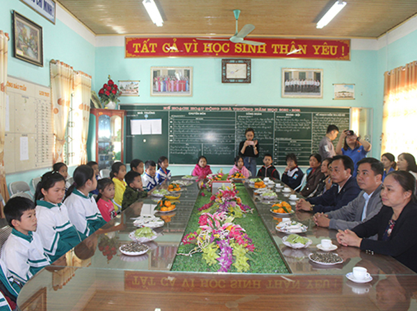 Đón tiếp đoàn công tác có bà Ma Thị Đồng, Phó Bí thư thường trực Đảng ủy xã Lam Vỹ, thầy Hiệu trưởng Nguyễn Công Liệu, đại diện Hội cha mẹ học sinh, cùng toàn thể các thầy cô giáo và các em học sinh thân yêu của Trường tiểu học Lam Vỹ.