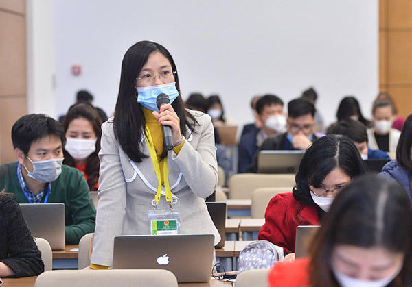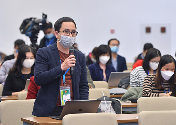 Phóng viên đặt câu hỏi tại buổi Họp báo