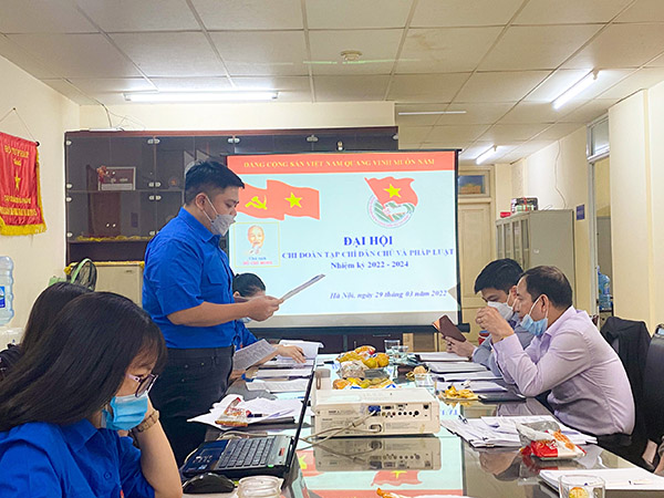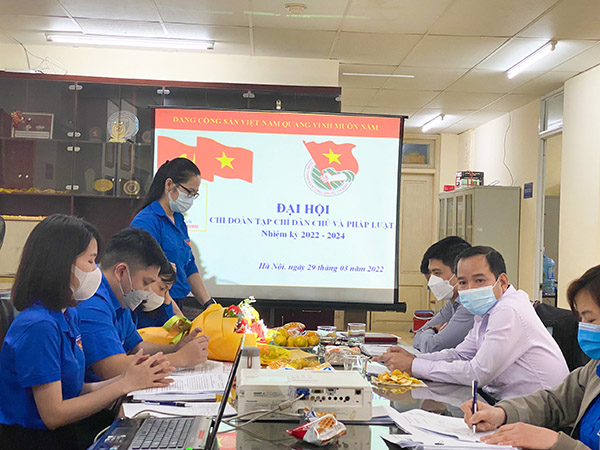 Ngày 29/3/2022, Đoàn TNCS Hồ Chí Minh Tạp chí Dân chủ và Pháp luật long trọng tổ chức Đại hội Chi đoàn Tạp chí nhiệm kỳ 2022 - 2024. Tham dự Đại hội, về phía Đoàn Thanh niên Bộ Tư pháp có đồng chí Trịnh Xuân Tùng - Phó Bí thư thường trực Đoàn Thanh niên Bộ Tư pháp; về phía Tạp chí Dân chủ và Pháp luật có đồng chí Vũ Hoài Nam - Bí thư Chi bộ, Q. Tổng Biên tập Tạp chí Dân chủ và Pháp luật; đồng chí Hoàng Thị Phương Hoa - Phó Bí thư Chi bộ, Trưởng Ban Thư ký toàn soạn; đồng chí Nguyễn Bá Trung - Chủ tịch Công đoàn, Trưởng Phòng Trị sự, cùng toàn thể đoàn viên Chi đoàn Tạp chí Dân chủ và Pháp luật.