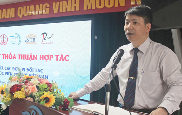 Buổi lễ diễn ra trang trọng với sự tham dự và ký kết Thỏa thuận hợp tác của Người đứng đầu các cơ quan và lãnh đạo các cơ quan, đơn vị trực thuộc, cùng Sinh viên Luật các khóa đang học tập tại Học viện. PGS.TS. Trần Quang Tiến - Giám đốc Học viện Phụ nữ Việt Nam và TS. Vũ Hoài Nam - Quyền Tổng Biên tập Tạp chí Dân chủ và Pháp luật đã ký Bản Thỏa thuận hợp tác và tin tưởng Thỏa thuận hợp tác này sẽ mở ra những cơ hội phát triển mới trong lĩnh vực giáo dục, đào tạo và nghiên cứu khoa học cho cả hai cơ quan, cam kết sẽ chỉ đạo các đơn vị liên quan triển khai sớm các nội dung thỏa thuận.