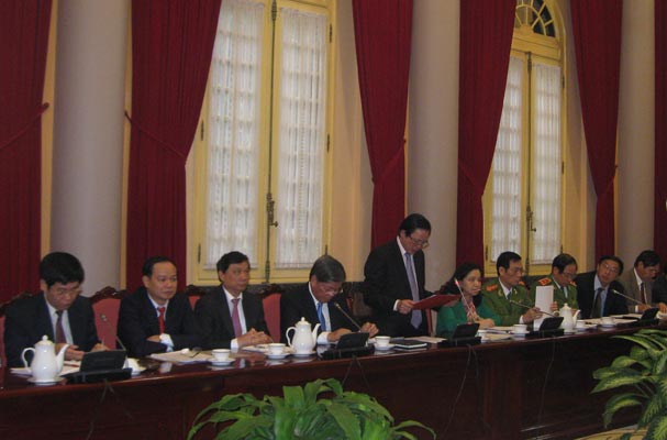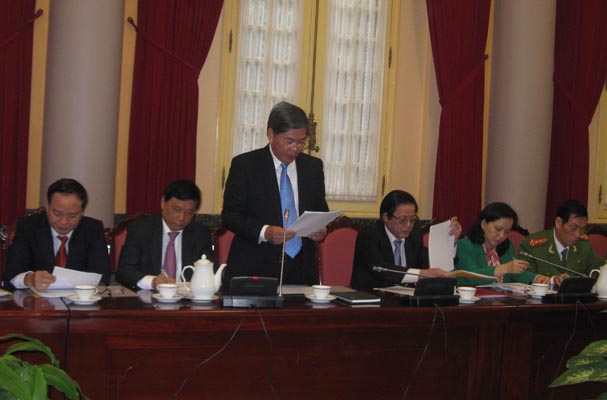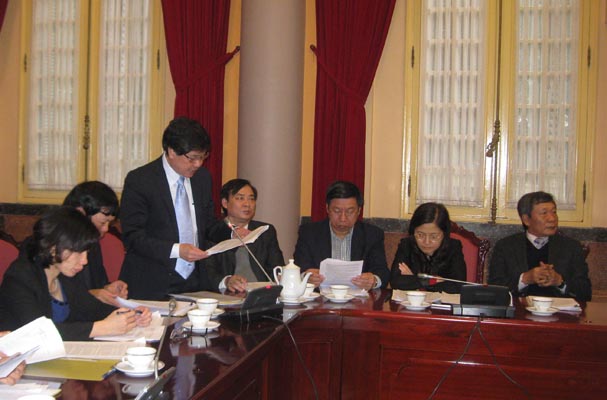Sáng ngày 12/12/2013 tại Phủ Chủ tịch, Văn phòng Chủ tịch nước đã tổ chức họp báo công bố Lệnh của Chủ tịch nước công bố 8 Luật và 1 Pháp lệnh. Tham dự họp báo có đại diện Bộ Tài nguyên và Môi trường, Bộ Nội Vụ, Thanh tra Chính phủ, Bộ Lao động - Thương binh và Xã hội, Bộ Nông nghiệp và Phát triển nông thôn, Bộ Tài chính, Bộ Kế hoạch và Đầu tư, Bộ Công an, Bộ Công thương... cùng đông đảo các phóng viên báo chí, phát thanh truyền hình. Phó Chủ nhiệm Thường trực Văn phòng Chủ tịch nước Giang Sơn chủ trì buổi họp báo.