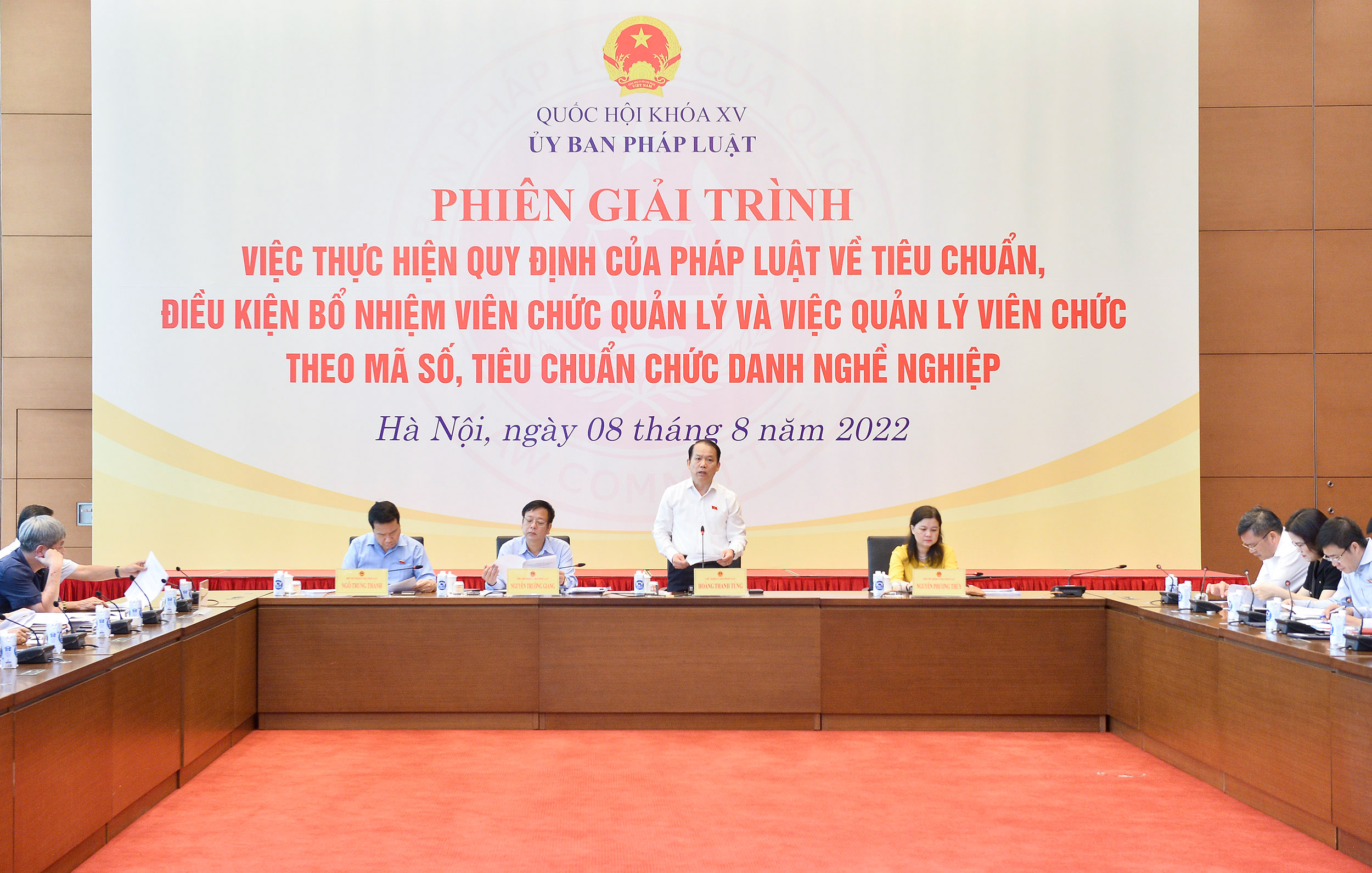 Chủ nhiệm Ủy ban Pháp luật nhấn mạnh, trong yêu cầu chung về nâng cao chất lượng, hiệu quả hoạt động của Quốc hội, việc thực hiện đầy đủ chức năng, thẩm quyền của Quốc hội, các cơ quan của Quốc hội trong vấn đề giám sát hoạt động của bộ máy nhà nước được coi là một trong những nội dung trọng tâm. Tại phiên giải trình này, sau 15 lượt ý kiến, các đại biểu đã nêu 26 câu hỏi, đề cập khá toàn diện các vấn đề về quản lý viên chức, không chỉ tập trung trong tiêu chuẩn, điều kiện bổ nhiệm viên chức quản lý, quản lý viên chức theo chức danh nghề nghiệp, mà cả một số vấn đề về cơ chế, chính sách, một số chế độ cho viên chức.