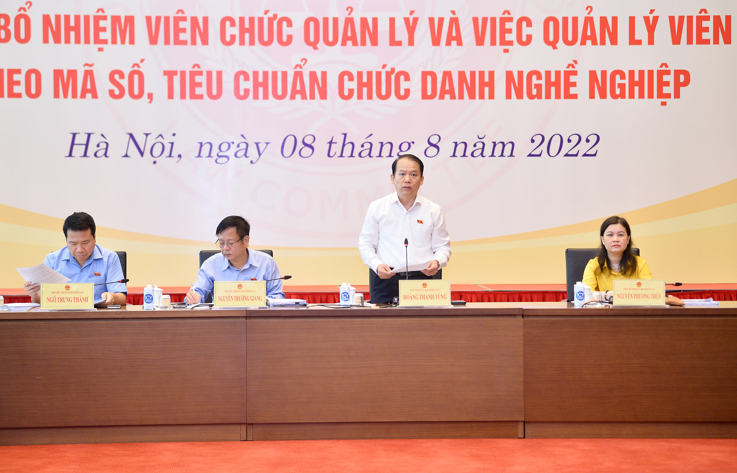Chủ nhiệm Ủy ban Pháp luật Hoàng Thanh Tùng đề nghị các Bộ, ngành hữu quan tiếp tục phát huy những kết quả đã đạt được, khắc phục những tồn tại, hạn chế đã nêu để tiếp tục đổi mới, nâng cao chất lượng quản lý, hiệu quả hoạt động của các đơn vị công lập, xây dựng đội ngũ viên chức có năng lực, trình độ, trách nhiệm.