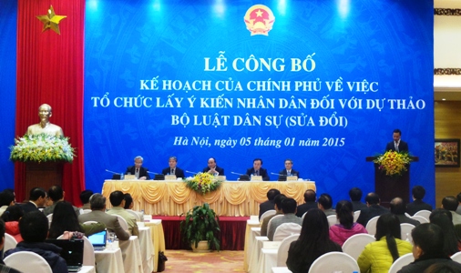 Ngày 02/01/2015, Thủ tướng Chính phủ đã ký Quyết định số 01/QĐ-TTg về việc ban hành Kế hoạch tổ chức lấy ý kiến nhân dân đối với dự thảo Bộ Luật Dân sự (sửa đổi). Theo Phó Thủ tướng Chính phủ Nguyễn Xuân Phúc thì Bộ Luật Dân sự là đạo luật lớn, phức tạp, phạm vi điều chỉnh rộng, tác động đến mọi mặt của đời sống xã hội, đời sống nhân dân, là luật chung, luật nền cho các luật khác trong hệ thống pháp luật Việt Nam, vì vậy, cần phải lấy ý kiến của nhân dân, phát huy trí tuệ tối đa của quần chúng nhân dân. Bộ trưởng Bộ Tư pháp Hà Hùng Cường cũng khằng định: Mục tiêu của việc xây dựng Bộ luật Dân sự (sửa đổi) là nhằm làm cho Bộ luật Dân sự thực sự trở thành luật chung của hệ thống pháp luật, điều chỉnh các quan hệ xã hội được hình thành trên nguyên tắc tự do, tự nguyện bình đẳng và chịu trách nhiệm giữa các bên tham gia; ghi nhận và bảo vệ tốt hơn các quyền của cá nhân, pháp nhân trong giao lưu dân sự; góp phần hoàn thiện thể chế kinh tế thị trường định hướng xã hội chủ nghĩa, ổn định môi trường pháp lý cho sự phát triển kinh tế - xã hội sau khi Hiến pháp năm 2013 có hiệu lực thi hành.